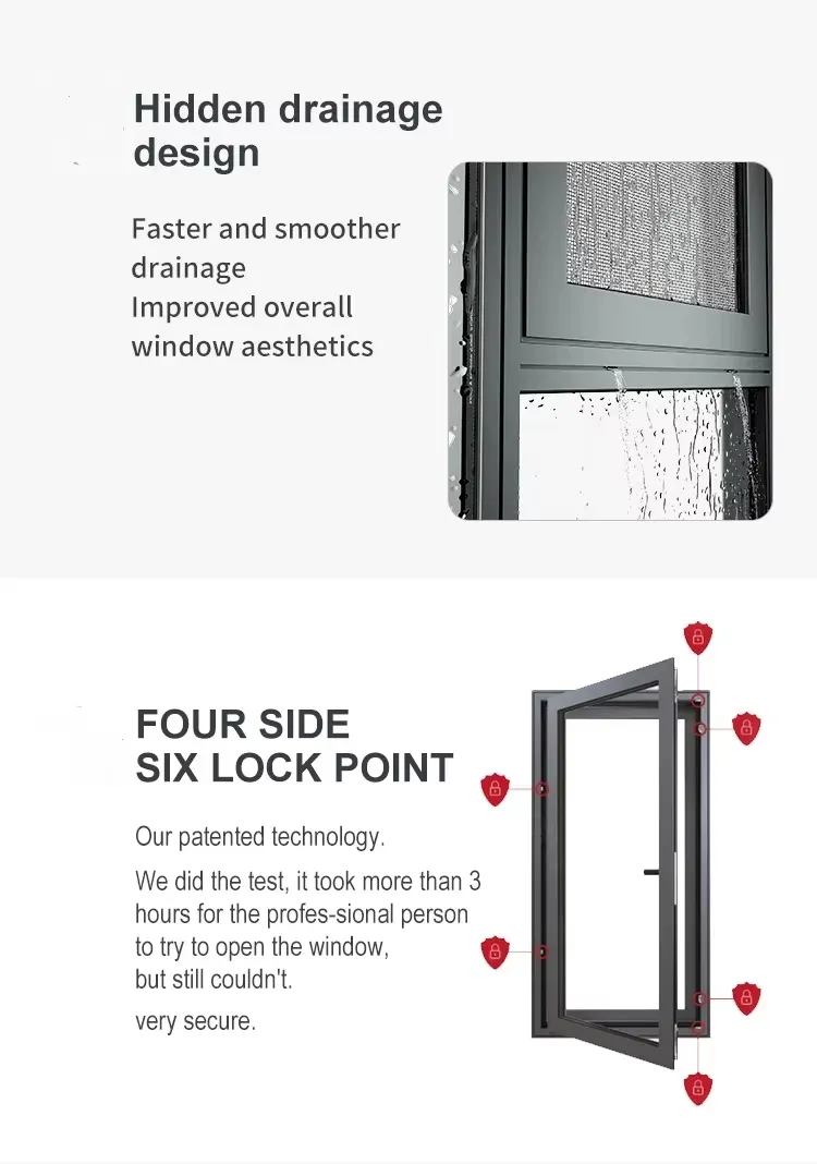 | Nazwa produktu | Okno z aluminiowego okna | Wykończenie powierzchniowe aluminium | Powłoka powłoka, elektroforoza powłoka fluokarbonowa, anodowanie |